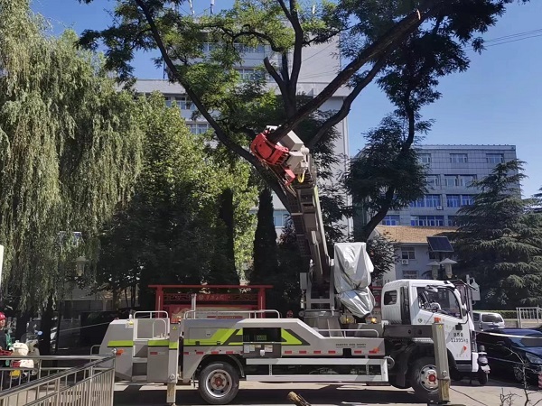 经过领导班子对此项工作精心部署,修剪作业严格遵照修剪计划及相关树木保护细则、树木修剪指引规范开展树木修剪整形工作。运用绿化综合作业车对华阳集团和华阳党校院内冠幅较大较密、倒伏可能性较高的一些乔木的枯枝、断枝、腐烂枝、病虫枝及一些遮挡行车视线的枝条、下垂枝、内膛枝等进行合理的重剪;对损坏较严重的树木进行修补修复;有效提升抗风能力,降低风阻和倒伏的概率。同时做好人流、车流导流、安全警示、树枝清理等工作,确保全过程安全、文明、和谐。