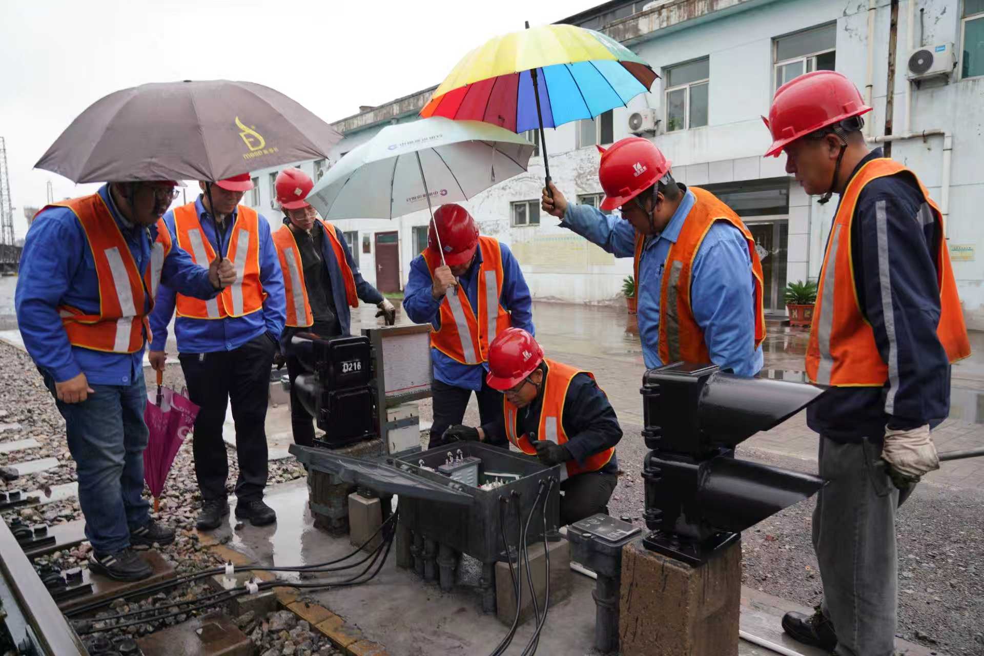 在铁路线路,检查组认真检查线路路基及部件紧固情况,仔细查看有无松动、沉降等安全隐患;线路轨道箱是否存在密封不严、雨水侵入导致线路短路等问题。现场叮嘱机车司机、调连员要严格执行雨天行车制度,规范操作流程,时刻关注天气变化与线路状况,提升应急处置能力,切实将安全责任落实到每一个环节,全力构筑汛期运输安全屏障。