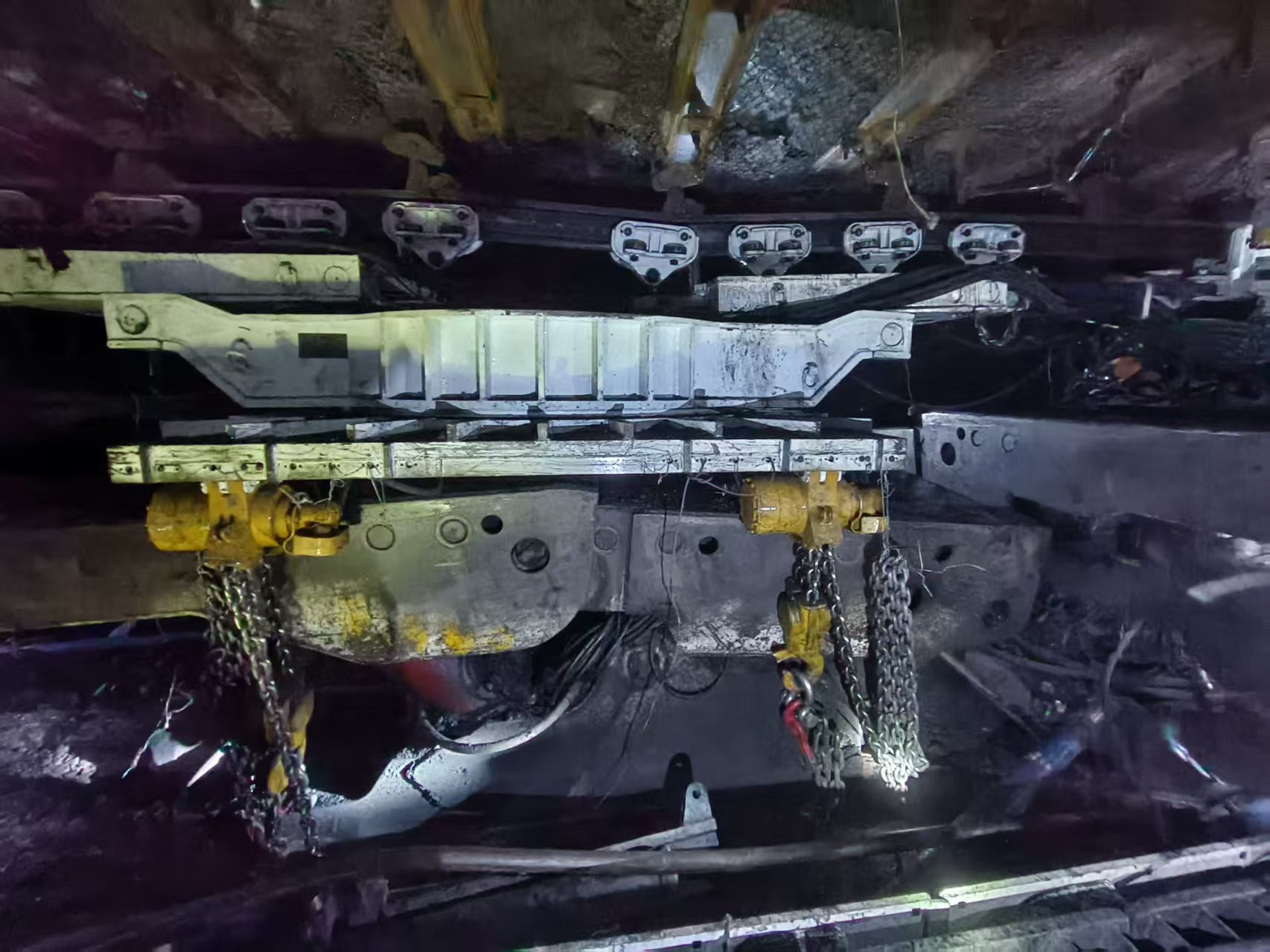 在本次安装工程中,南关煤业创新应用"单轨吊接力运输进切巷+旋转梁遥控调向"一体化技术。该项创新不仅实现了重型液压支架的远程精准操控,更大幅提升了施工的安全性和效率。综采队班组长韩亚辉深有体会的说:"操作工远离作业区远程遥控,旋转梁就能轻松带动支架转向,这比传统方式安全便捷太多了。"